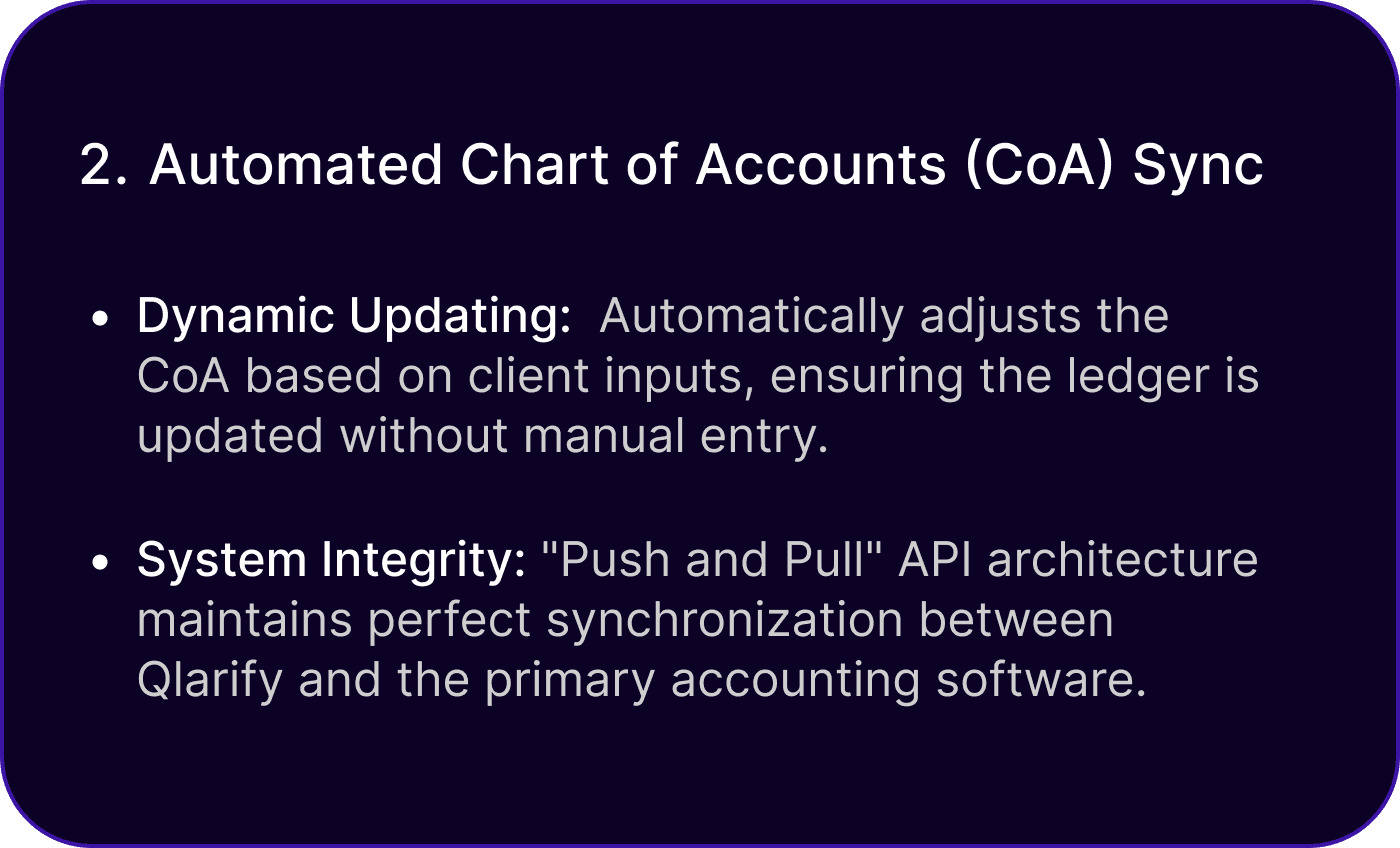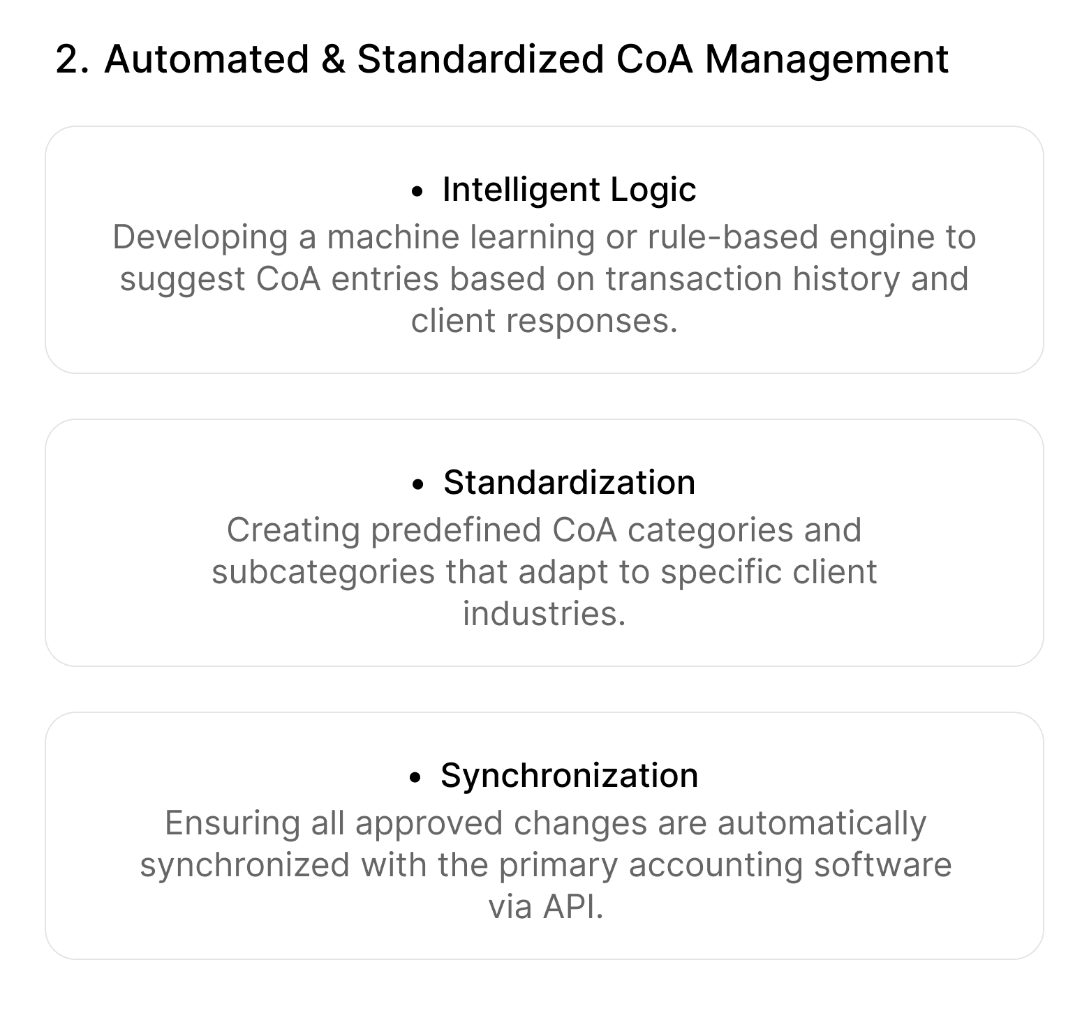 Dynamic Updating: Automatically adjusts the CoA based on client inputs, ensuring the ledger is updated without manual entry.