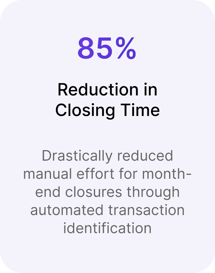 Drastically reduced manual effort for month end closures through automated transaction identification