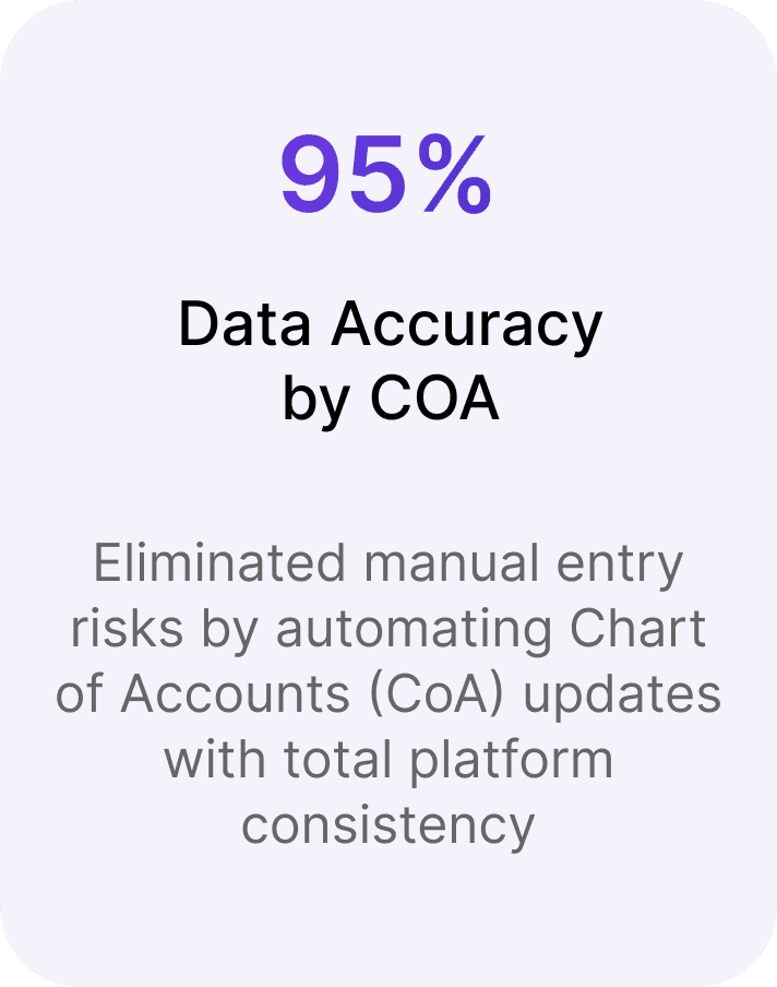 Eliminated manual entry risks by automating Chart of Accounts (CoA) updates with total platform consistency