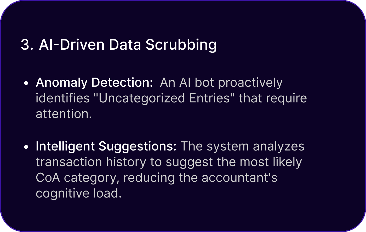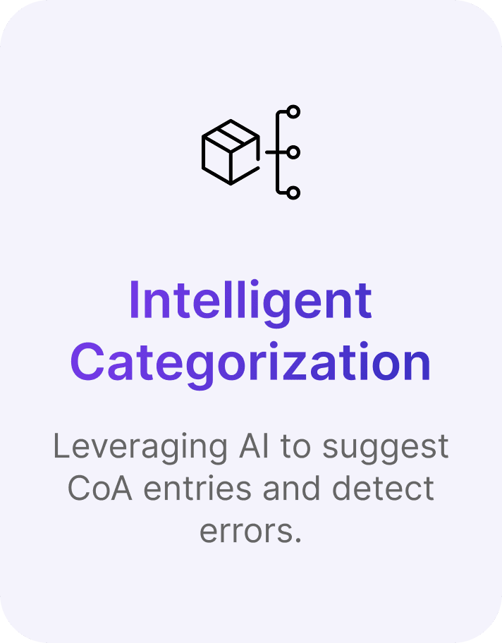 The system analyzes transaction history to suggest the most likely CoA category, reducing the accountant's cognitive load.