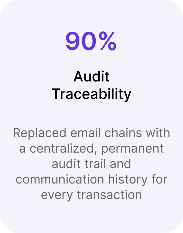 Replaced email chains with a centralized, permanent audit trail and communication history for every transaction