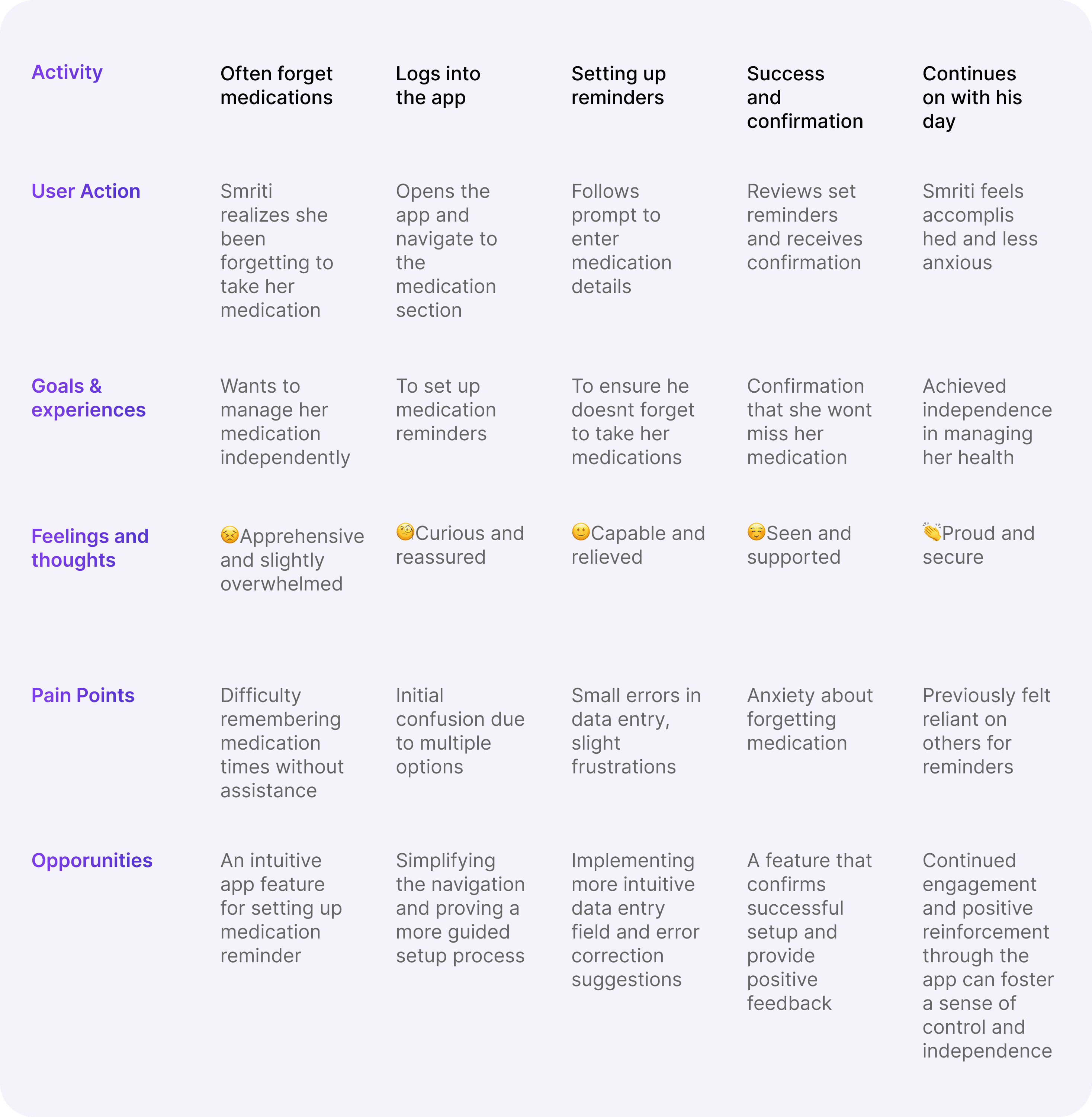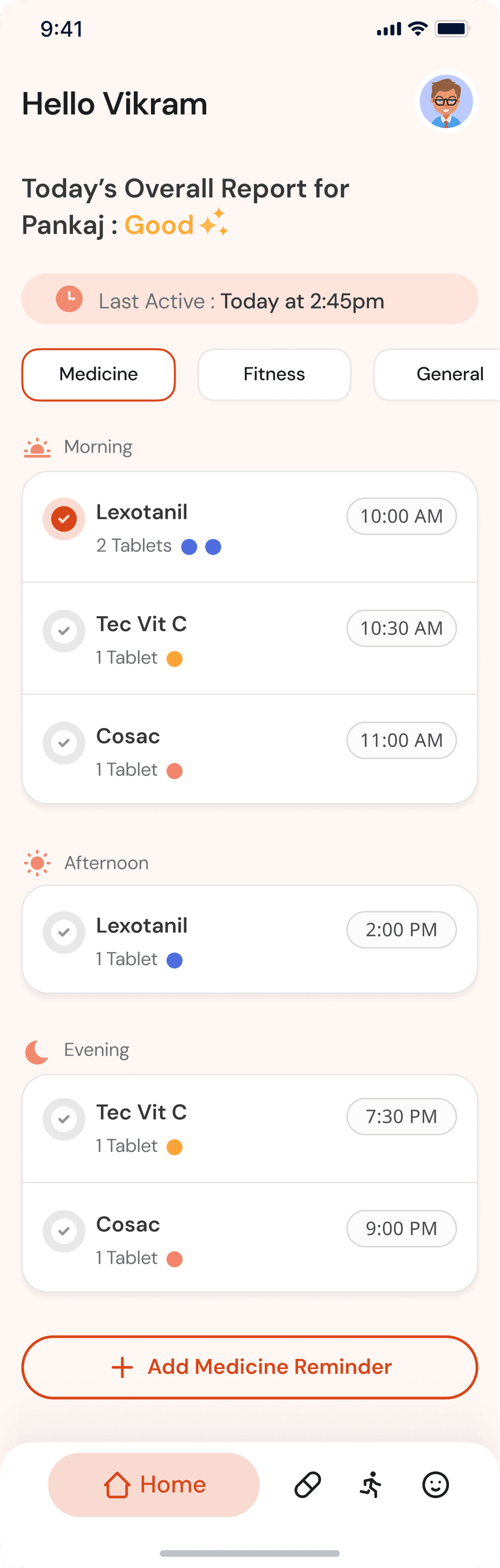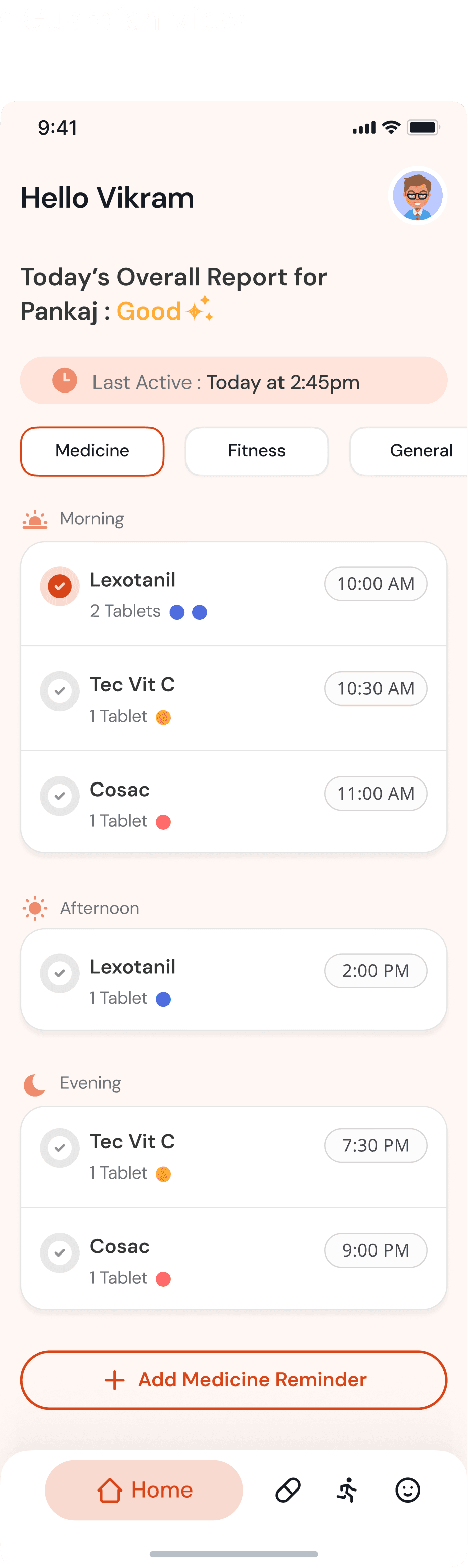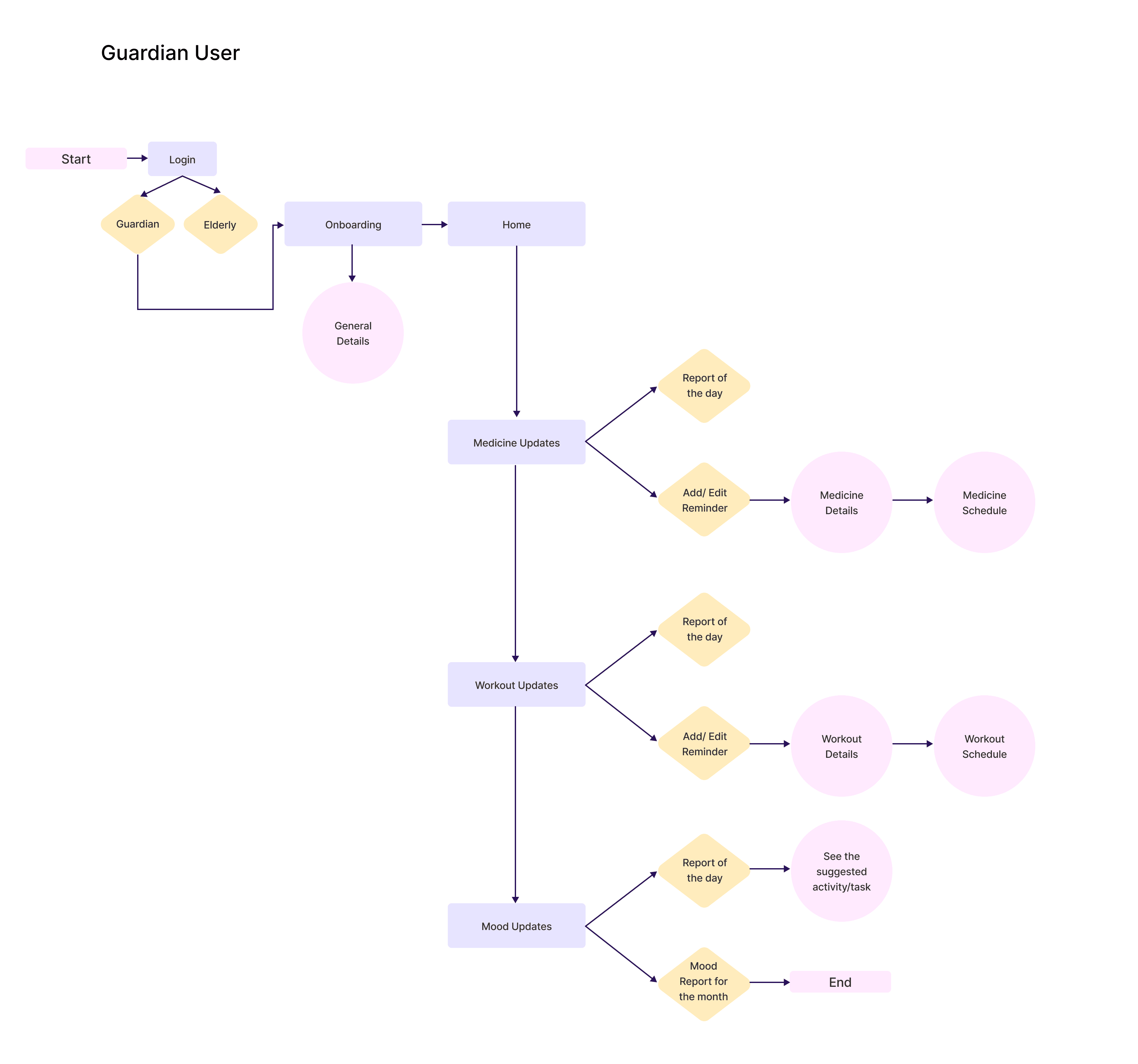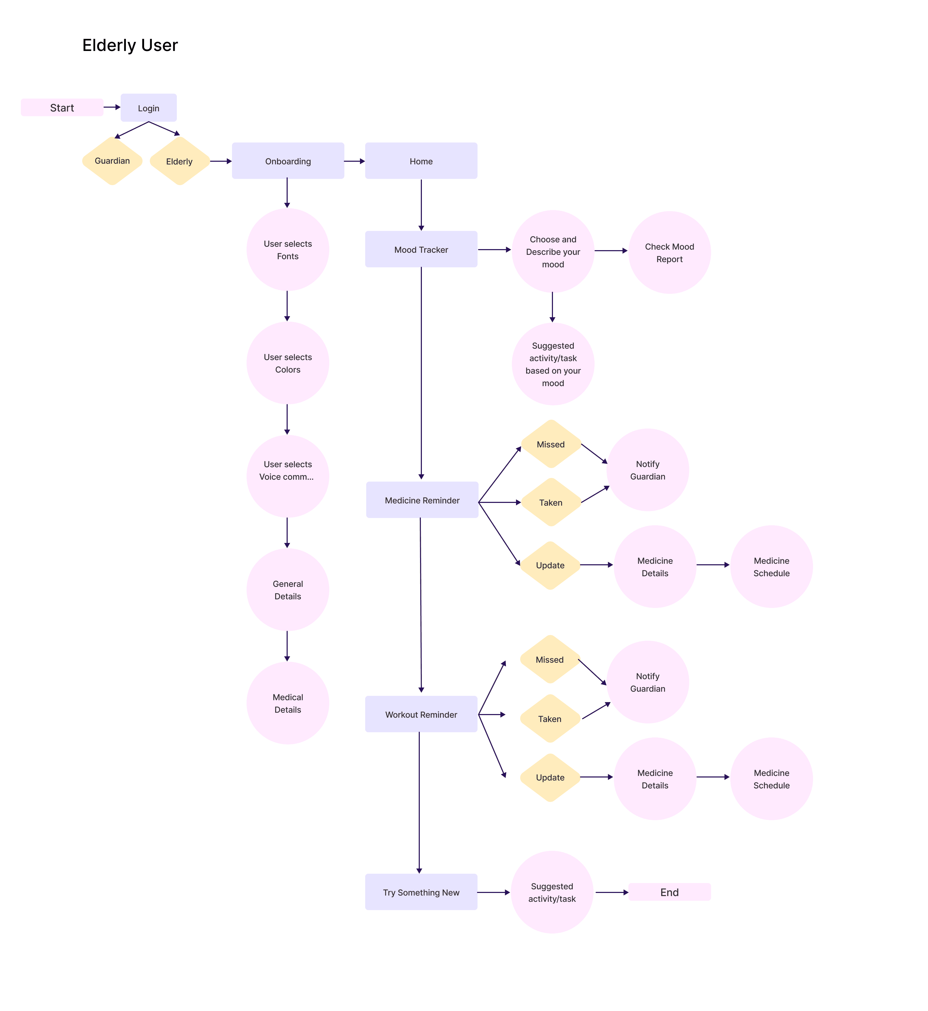 The Logic: The app must act as a bridge. The elderly user needs Active Autonomy (tools to manage their own schedule), while the guardian needs Passive Reassurance (visibility without intrusive checking-in).