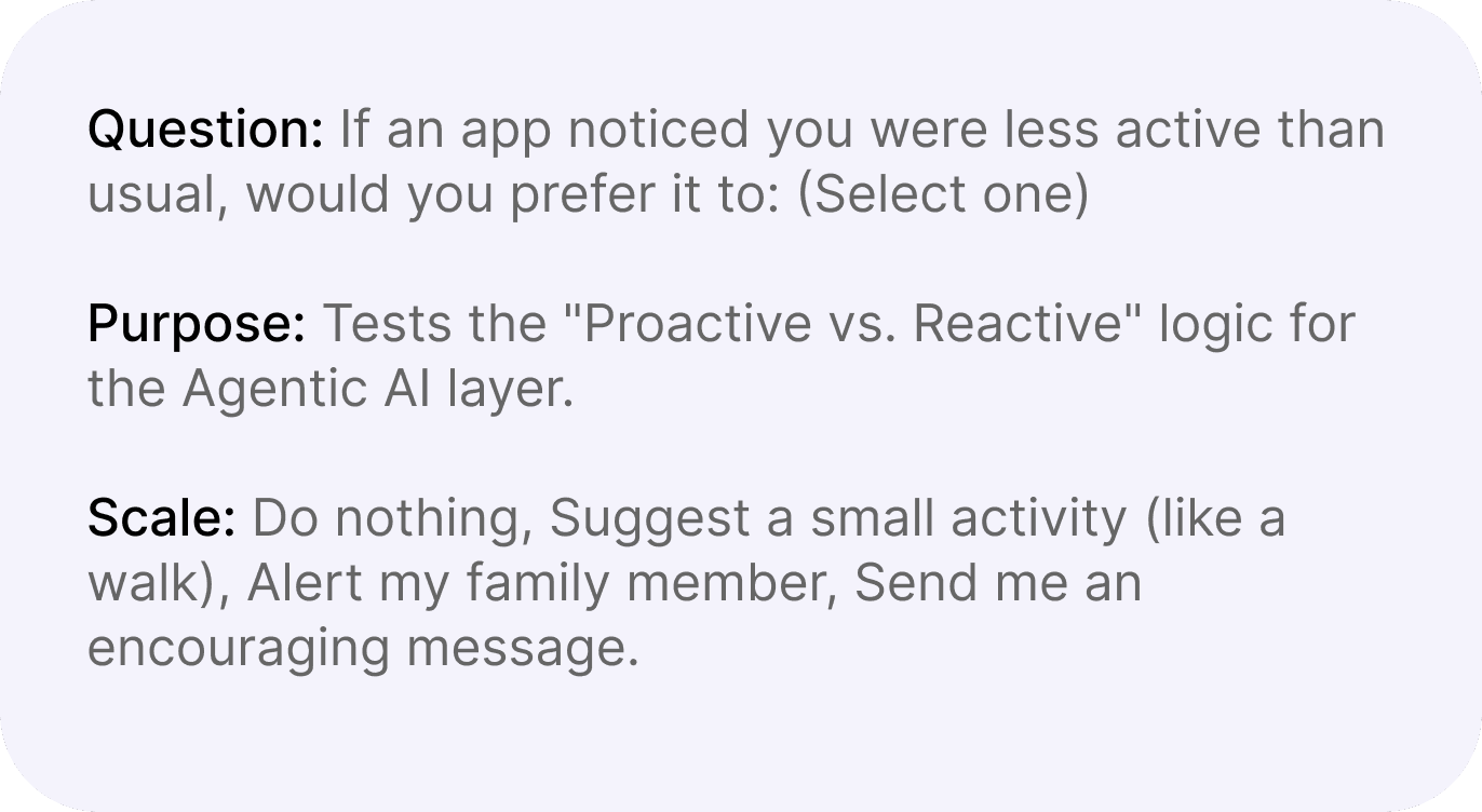 Scale: Do nothing, Suggest a small activity (like a walk), Alert my family member, Send me an encouraging message.