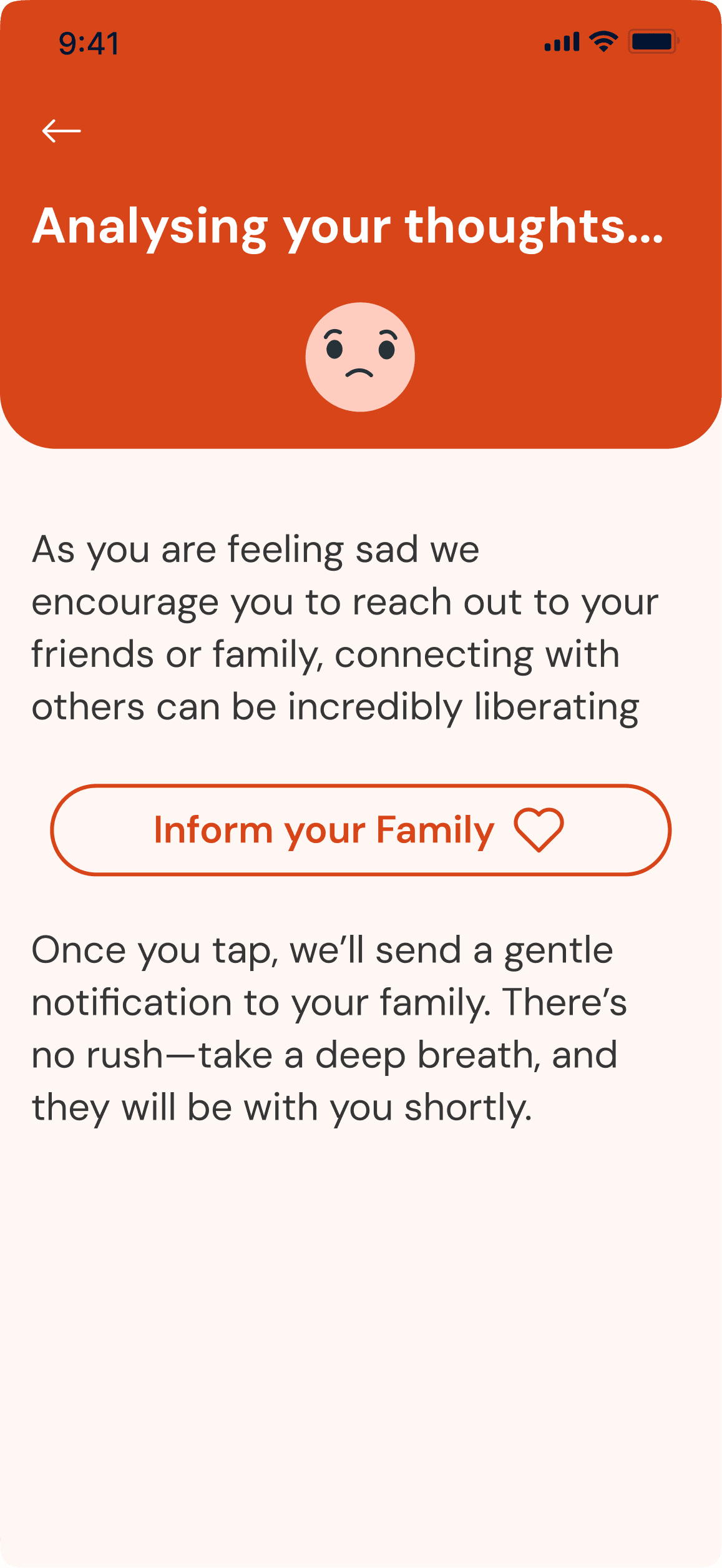 Once you tap, we’ll send a gentle notification to your family. There’s no rush—take a deep breath, and they will be with you shortly.