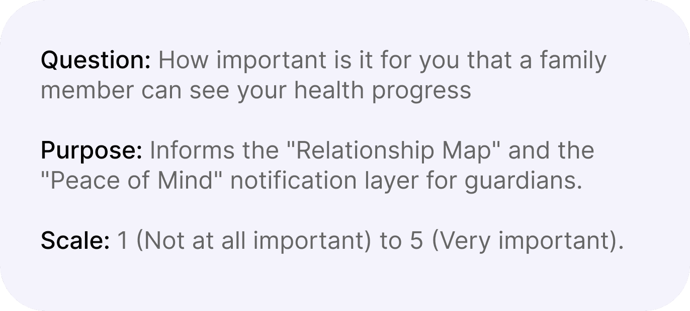 Purpose: Informs the "Relationship Map" and the "Peace of Mind" notification layer for guardians.
