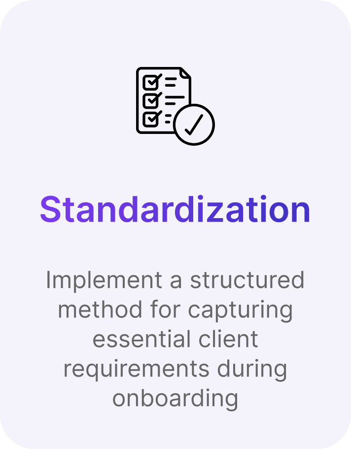 Implement a structured method for capturing essential client requirements during onboarding