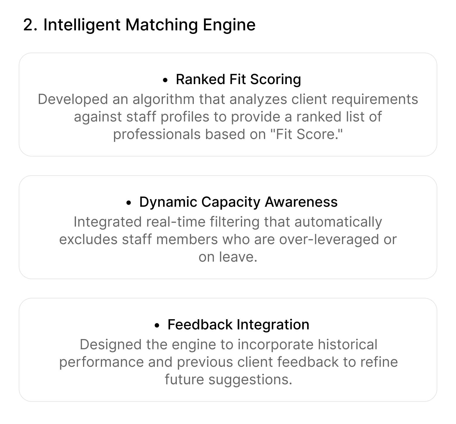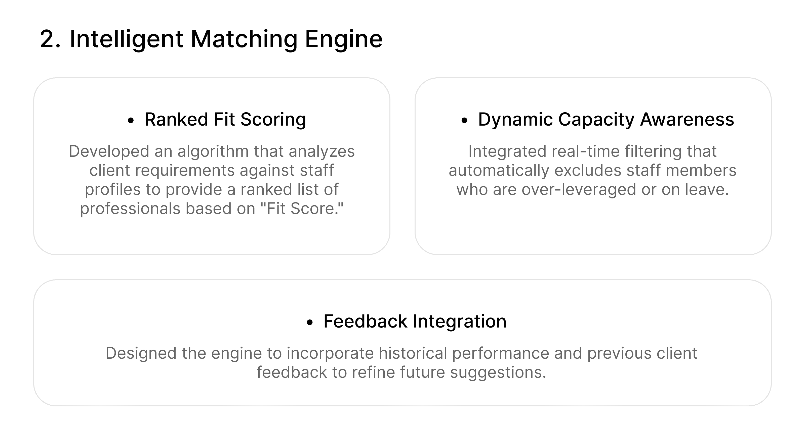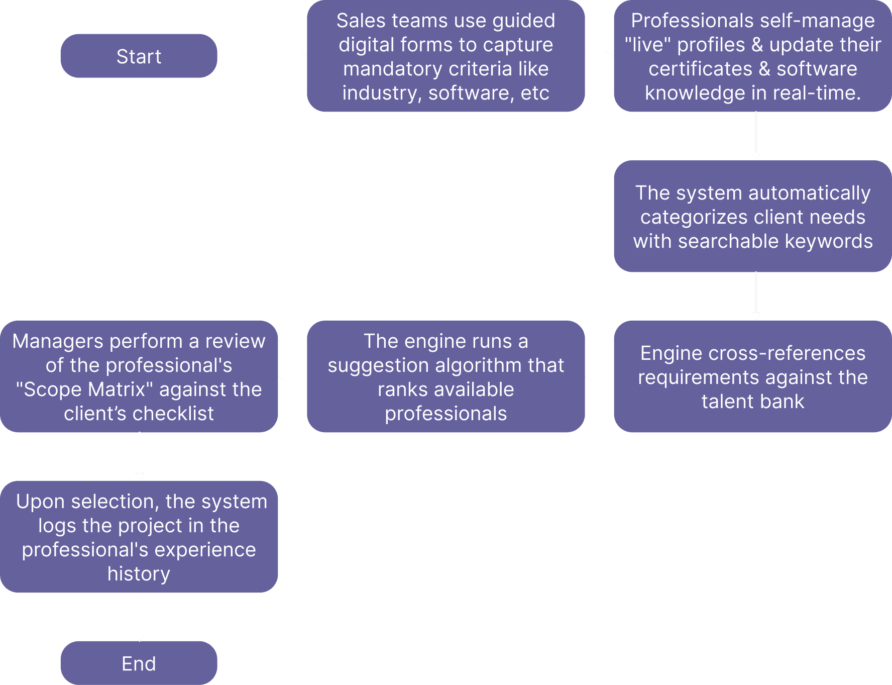 The primary objective was to create an intuitive, intelligent system within the portal to streamline matching and improve operational efficiency.