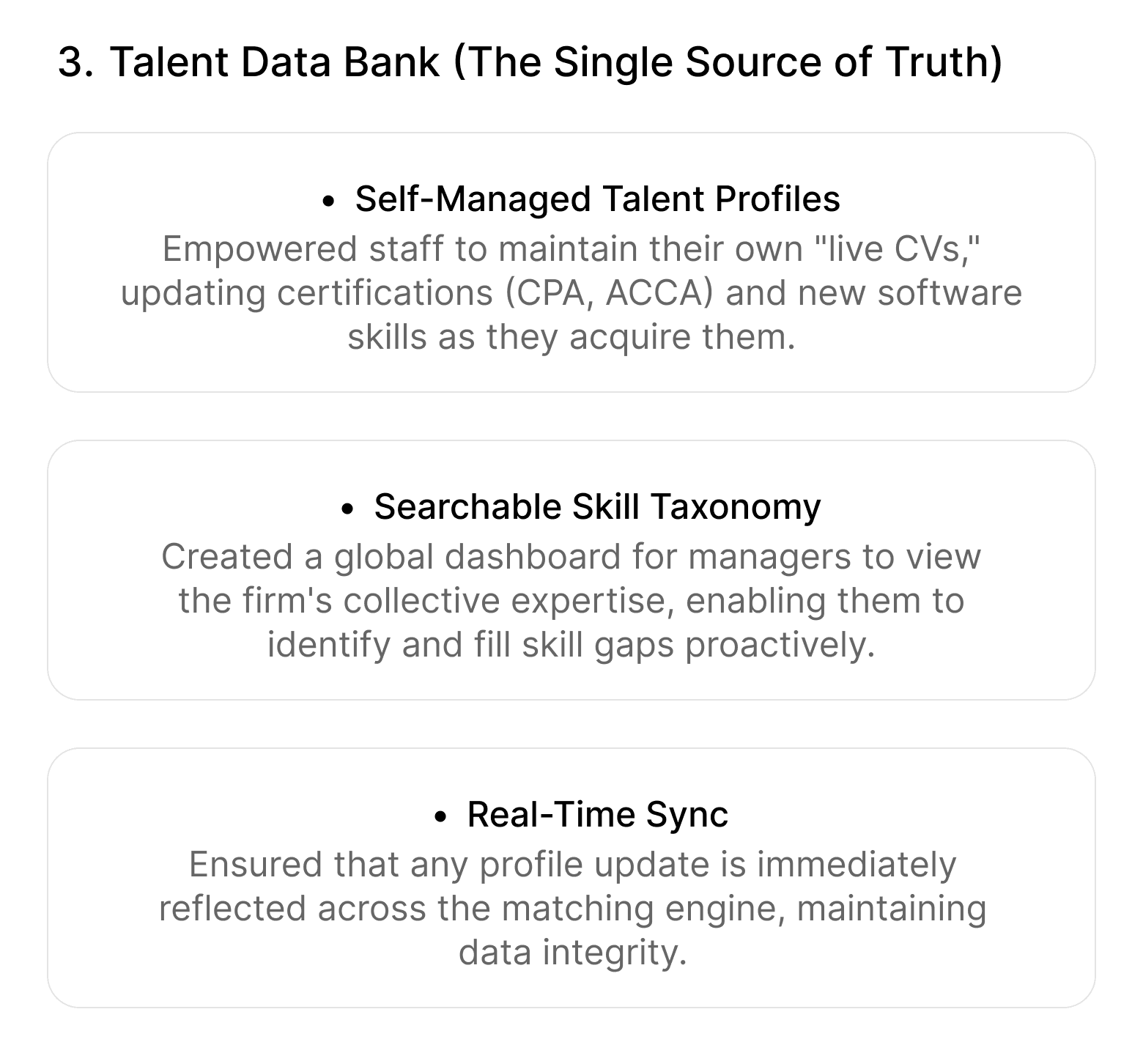 Allowing professionals to self manage their profiles in the Talent Data Bank significantly increased data accuracy compared to traditional top down administration