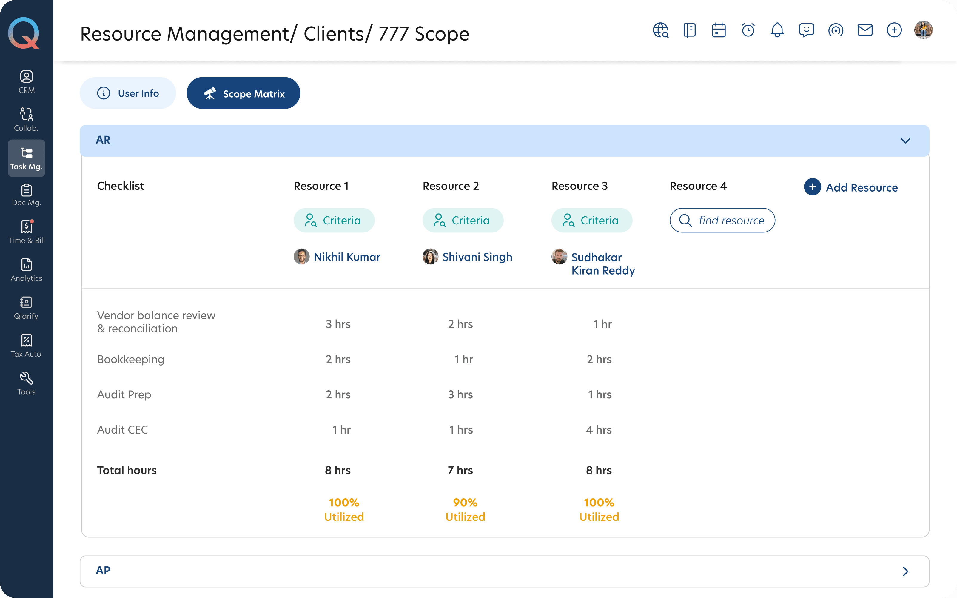 Managers perform a review of the professional's "Scope Matrix" against the client’s checklist