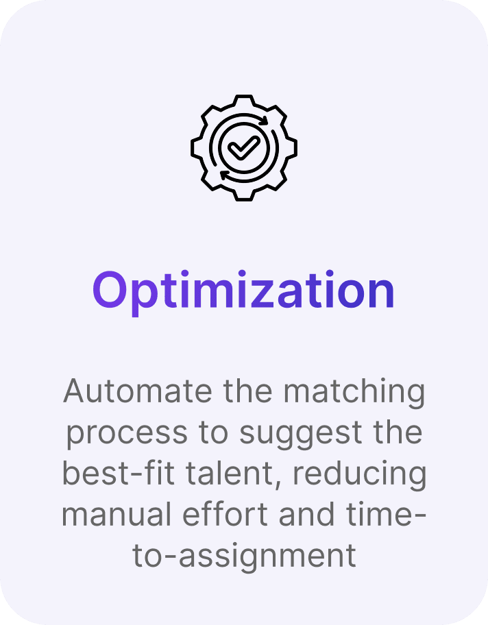 Automate the matching process to suggest the best fit talent, reducing manual effort and time to assignment