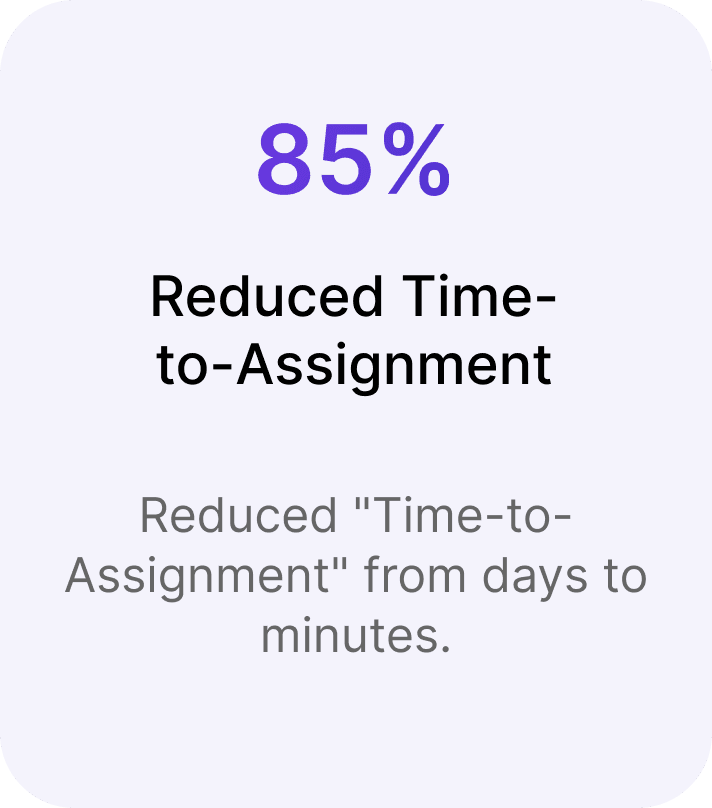 Reduced "Time to Assignment" from days to minutes.