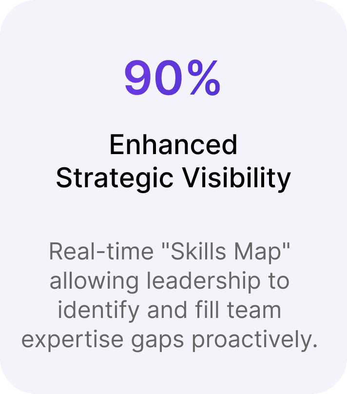 Real-time "Skills Map" allowing leadership to identify and fill team expertise gaps proactively.
